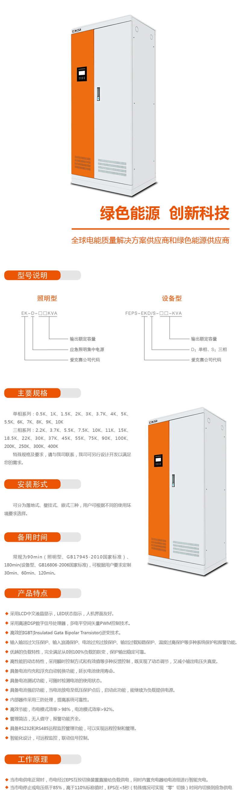 EPS:采用離線運(yùn)行方式,高效節(jié)能、噪音低